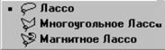 | Лассо - позволяет обвести мышкой любую зону, которую надо выделить. Разновидностями инструмента Лассо являются: Многоугольное лассо - то же самое, но выделение идет только прямоугольником Магнитное лассо – контур выделения автоматически «прилипает» к границам соответствующего элемента управления. | ||||||