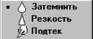 | - осветление фрагмента. - затемнение фрагмента. - снижает насыщенность цветов. | ||||||