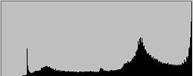 | гистограмма тусклого изображения (преобладают средние тона, почти полное отсутствие светов и теней). |