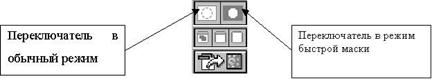 Кроме обычных способов выделения различных областей и лассо есть еще один способ создания выделений. Это режим "быстрой маски". Переключиться в этот режим можно при помощи переключателя на панели инструментов (рисунок 2).