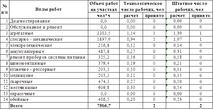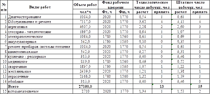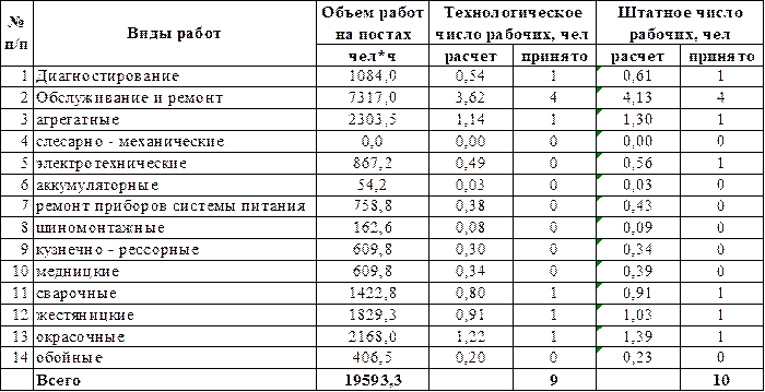 Результаты расчета численности производственных рабочих на постах приведены в табл. 7