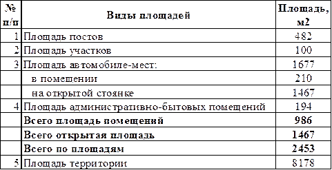 где Fз пс, Fз aб, Fхр – площадь соответственно производственно – складских помещений, административно – бытовых помещений и площадок для хранения автомобилей, м2,
