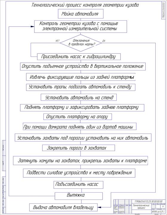 Технологический процесс участка представляет собой последовательность работ, выполняемых на участке. Выполняется в виде алгоритма или блок-схемы. На рисунке представлен процесс выполнения работ на шиномонтажном участке.