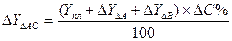 б) для расчета влияния изменения второго фактора на результат необходимо к плановой (базовой) величине результативного фактора прибавить его изменение за счет первого фактора, сумму умножить на относительный прирост второго фактора и разделить на 100
