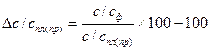 в) относительное отклонение от показателя плана (предшествующего периода)