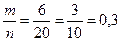 В6. В классе 21 шестиклассник, среди них два друга - Митя и Петя. Класс случайным образом делят на три группы, по 7 человек в каждой. Найдите вероятность того, что Митя и Петя окажутся в одной и той же группе. Решение: Допустим, что Митя хочет быть в одной и той же группе с Петей. Тогда общее число случаев «всего одноклассников» п= 21-1=20, число случаев «всего одноклассников в группе, в которой окажется Петя» т = 7-1=6. Значит, вероятность того, что Митя и Петя окажутся в одной и той же группе, равна: Р(А) = . В бланк ответов: 0,3 |