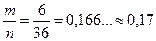 Число случаев «выпавшие числа будут отличаться на 3»: т = 6. Значит, вероятность того, что выпавшие числа будут отличаться на 3, равна: Р(А) =