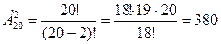 В6. В классе 20 человек. Сколькими способами можно выбрать 2 человека для конкурса? Решение: т = 20, п = 2. Порядок не важен. Число выборок В бланк ответов: 380 |