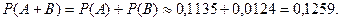 Значит, вероятность того, что среди взятых пяти шаров не менее четырех белых шаров, равна: В бланк ответов: 0,1259 |