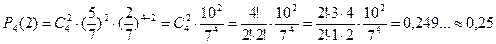 вероятность «удачи» равна доле «удачных» дней среди всех дней недели, т.е. p=