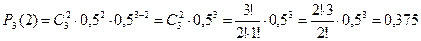 В6. Испытание состоит в одновременном бросании трех различных монет. «Неудача»: «решек» больше, чем «орлов». Какова вероятность того, что будет ровно две «удачи» среди 3 бросаний? Решение: .Вероятность того, что будет ровно две «удачи» среди 3 бросаний трех различных монет, равна: «Удача» при одном бросании состоит в том, что «решек» выпало меньше, чем «орлов». Всего возможны 8 результатов: РРР, РРО, РОР, ОРР, РОО, ОРО, ООР, ООО (Р - «решка», О - «орел»). Ровно в половине из них «решек» меньше «орлов»: РОО, ОРО, ООР, ООО. Значит, p = q = 0,5. В бланк ответов: 0,375 |