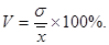 Для сравнения вариаций нескольких признаков по одной и той же совокупности объектов показатели вариации приводятся к сопоставимому виду. Достигается это сравнением среднего квадратического отклонения со средним уровнем того же признака. Получаемые величины называются коэффициентами вариации (V). Значения коэффициентов вариации обычно указывают в процентах. В статистике совокупности, имеющие коэффициент вариации больше 30-35 %, принято считать неоднородными.