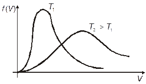 Такое расположение обусловлено характером распределения, при котором существенный вклад вносят молекулы с большими скоростями. Например, при комнатой температуре скорость молекул составляет ~ 400-500 м/с. С повышением температуры скорости молекул растут как
