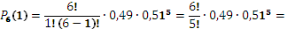 7) В семье шесть детей. Вероятность рождения девочки равна 0,49. Найти вероятность того, что среди этих детей одна девочка.