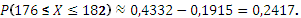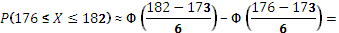 Из условия следует, что a = 173, σ = 6, α = 176, β = 182. Поэтому: