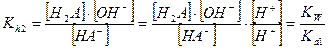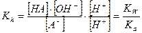 Полученная константа Kh есть константа гидролиза аниона слабой кислоты. Если умножить числитель и знаменатель полученного выражения на