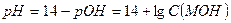 1. Сильные однокислотные основания (МОН) диссоциируют в водных растворах нацело (α = 1) и рН в растворах таких оснований определяется исходной концентрацией основания С (МОН):