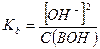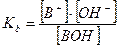 2. Слабые однокислотные основания (ВОН) диссоциируют в водных растворах частично и при этом устанавливается динамическое химическое равновесие: ВОН ↔ В+ + ОН-, которое характеризуется соответствующей константой равновесия – константой основной диссоциации Kb: