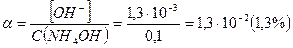 Степень диссоциации слабого основания следует рассчитывать в соответствии с определением данной величины: