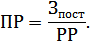 Графическое построение и аналитические пропорции дают возможность записать также следующее соотношение для точки безубыточности: