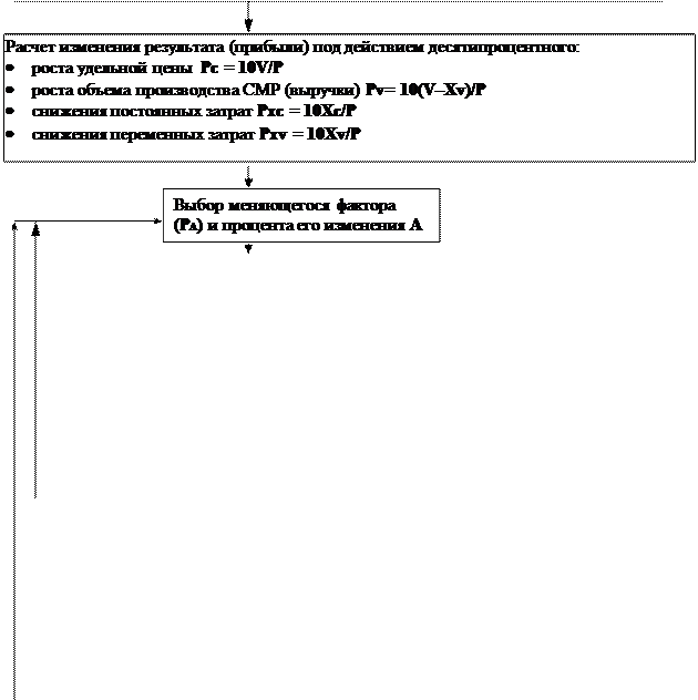 Использование таблицы 3.2 поясним на примере: рост постоянных затрат (Xc) на 5% (см. третью графу таблицы 3.2) может быть компенсирован для прибыли одновременным ростом удельной цены на 2.25%, ростом объема работ на 4.3% и сокращением переменных затрат на 4.7%.