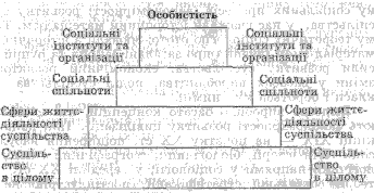 — соціальна структура суспільства (соціологічні теорії, які вивчають функціонування соціальних верств, класів, груп, соціально-етнічні і національні