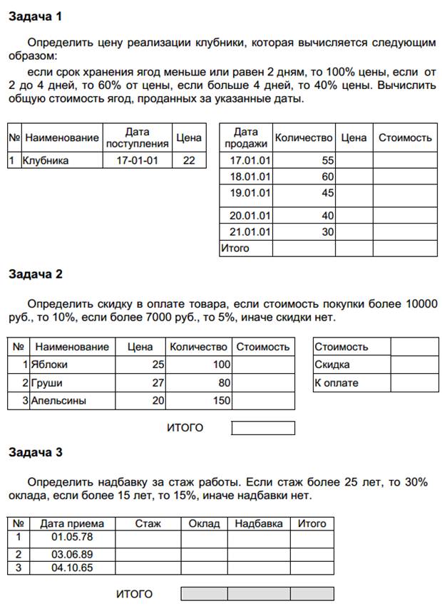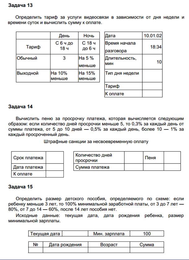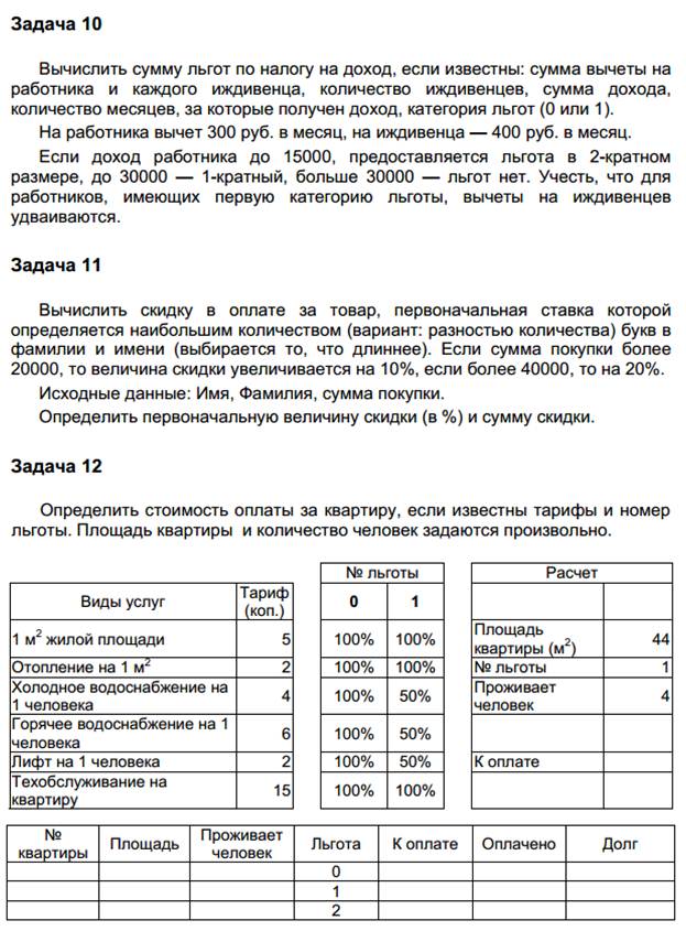 Составить таблицу расчета оплаты за аренду помещений в зависимости от площади: если арендуемая площадь меньше 100 м2, то арендная плата составляет 500 руб. за 1 м2, если арендуемая площадь больше, чем 100 м2, но не превышает 200 м2, то арендная плата составляет 700 руб. за 1 м2. За площадь более 200 м2 арендная плата – 800 руб. за 1 м2.