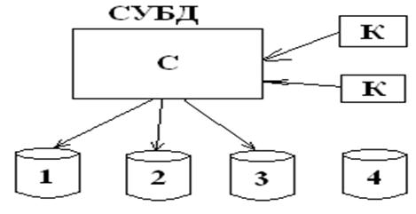 Клиент видит больш БД, кот сост из мн-ва локальных БД (рис):