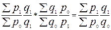 Если известны индексы общей стоимости и физического объема, то индекс цен определяется как частное от деления первого индекса на второй: