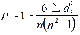 Коэффициент корреляции рангов (коэффициент Спирмена) рассчитывается по рангам двух взаимосвязанных признаков следующим образом: