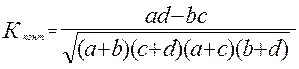 Расчет коэффициента взаимной сопряженности производится по следующей схеме: