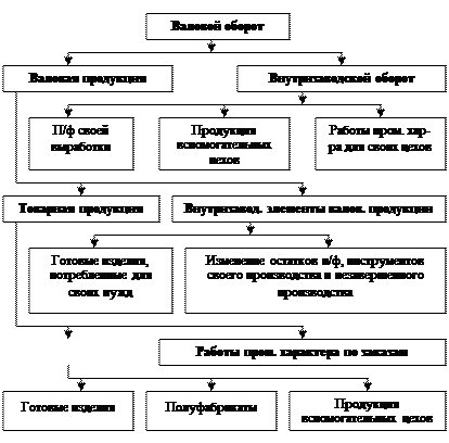Учёт продукции в стоимостном выражении позволяет соединить в одном результате различные виды продукции и работ всех подотраслей, отраслей и промышленности в целом. Классическая схема показателей представлена на рисунке 9.1.