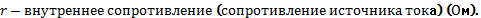 Закон Ома для полной цепи: Сила тока в полной цепи прямо пропорциональна ЭДС источника тока и обратно пропорциональна сумме внешнего и внутреннего сопротивлений цепи.