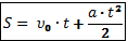 Перемещение при прямолинейном равноускоренном движении вычисляется по формуле: