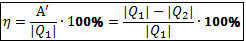 Коэффициентом полезного действия теплового (КПД) называют отношение работы А′, совершаемой двигателем, к количеству теплоты