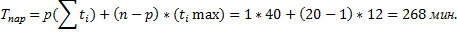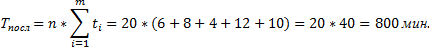 На предприятии организовано серийное производство фланцев для фонтанной арматуры скважин. Рассчитать длительность технологического цикла при последовательной, параллельной и параллельно-последовательной обработке партии изделий в производстве. Количество изделий в партии (n) – 20. Число технологических операций (m) – 5. Размер передаточной партии изделий (р) – 1. Длительность технологических операций: t1 = 6 мин, t2 = 8 мин, t3 = 4 мин, t4 = 12 мин, t5 = 10 мин.