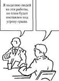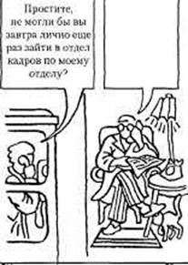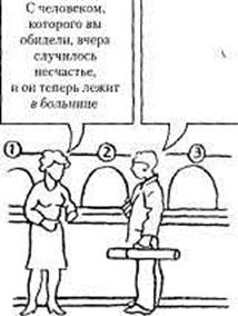 Порядок проведения игры. Обучаемым выдаются рисунки, на которых изображены два человека*. То, что говорит первый человек, написано в квадрате слева. Обучаемые должны записать свои варианты ответа за другого человека.