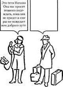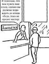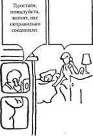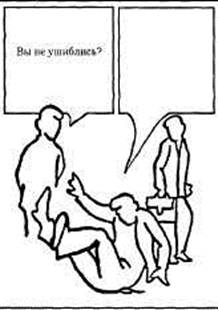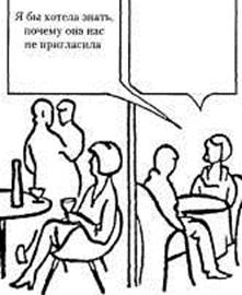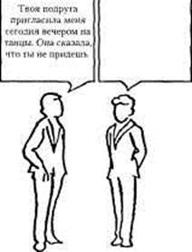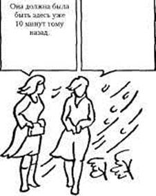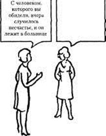 Порядок проведения игры. Обучаемым выдаются рисунки, на которых изображены два человека*. То, что говорит первый человек, написано в квадрате слева. Обучаемые должны записать свои варианты ответа за другого человека. Затем преподаватель организует обсуждение вариантов ответа.