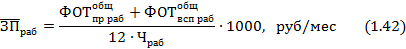 Часовая тарифная ставка для среднего разряда оплаты труда вспомогательного рабочего определяется аналогично часовой тарифной ставке для среднего разряда оплаты труда производственного рабочего по формуле (1.8).