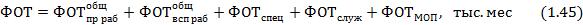 общий (основной и дополнительный) годовой фонд оплаты труда всего персонала цеха, тыс. руб.:
