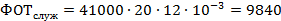годовой фонд оплаты труда специалистов, служащих и младшего обслуживающего персонала, соответственно, тыс. руб.:
