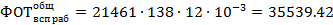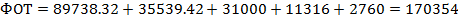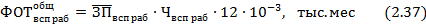 общий (основной и дополнительный) годовой фонд оплаты труда, соответственно, производственных и вспомогательных рабочих цеха, тыс. руб.: