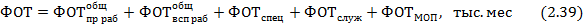 общий (основной и дополнительный) годовой фонд оплаты труда всего персонала цеха, тыс. руб.: