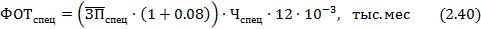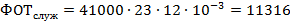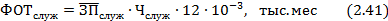 годовой фонд оплаты труда специалистов, служащих и младшего обслуживающего персонала, соответственно, тыс. руб.