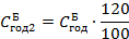 себестоимость годового объема продукции во втором году расчетного периода (себестоимость годового объема продукции при базовой технологии, скорректированная с учетом п. 2 примечаний к табл. 6), (составляет 120% к базовому году) тыс. руб.:
