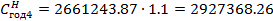 себестоимость годового объема продукции в четвертом году расчетного периода (себестоимость годового объема продукции при новой технологии, скорректированная с учетом п. 3 примечаний к табл. 6), (себестоимость продукции составляет 110% к себестоимости, расчитанной в п.2.3.), тыс. руб.: