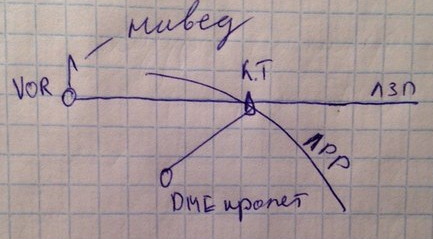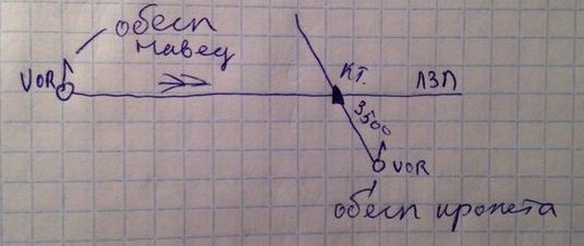 2. КТ, заданные по пересечению пеленга (радиала) при полёте на или от маркированной КТ. (пеленг боковой РНТ указывается в схеме)