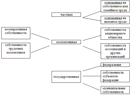 В рыночной экономике различают следующие формы собственности, определяющие принадлежность объектов собственности субъекту и составляющие основу той или иной экономической системы. В каждой экономической системе существует какая-то основная специфическая для нее форма собственности. Это, однако, не исключает существования и других ее форм. Переход от одних форм собственности к другим может происходить эволюционным путем, на основе конкурентной борьбы, и революционным путем, когда новые формы насильно утверждают свое господство.