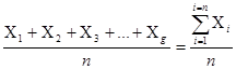 )- это отношение суммы величин всех опытов (Х1, Х2, Х3… Хп) к числу опытов (п):