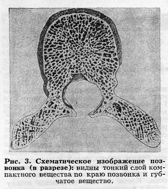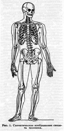Костная система — опорный остов организма, представляющий совокупность сочленяющихся костей; обусловливает внешний вид и форму тела человека (рис. 1) и позвоночных животных. Кость представляет сложное образование, состоящее из костной ткани (главная масса кости), костного мозга, суставного хряща, нервов и сосудов. Снаружи кости, за исключением суставных поверхностей, покрыты надкостницей. Надкостница — тонкая, крепкая соединительнотканная пленка, богатая сосудами и нервами.По форме и строению различают четыре основных вида костей: трубчатые, губчатые, плоские, или широкие, и смешанные. Трубчатая кость состоит из диафиза (компактная кость), внутри которого находится костный мозг, и двух эпифизов, имеющих суставную поверхность, покрытую хрящом (кости нижних и верхних конечностей, рис. 2). Губчатые кости состоят преимущественно из губчатого вещества, покрытого тонким слоем компактного вещества — ребра, позвонки (рис. 3), мелкие кости стопы и кисти.